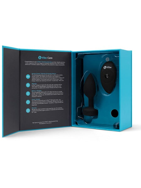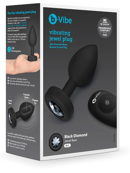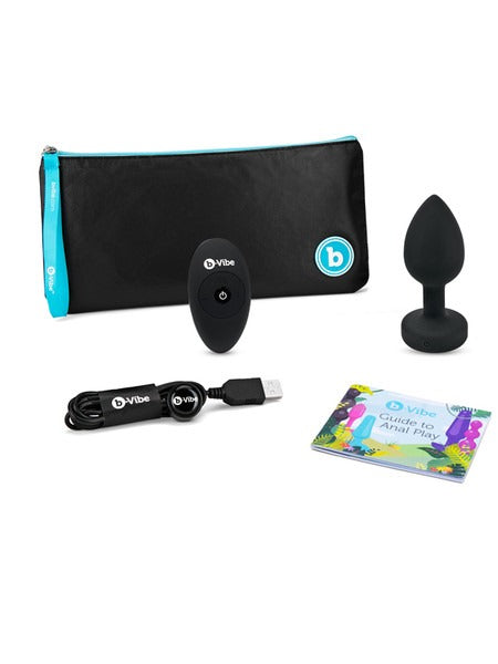 b-Vibe Rechargeable Jewel Plug with Remote - M/L - Black Diamond