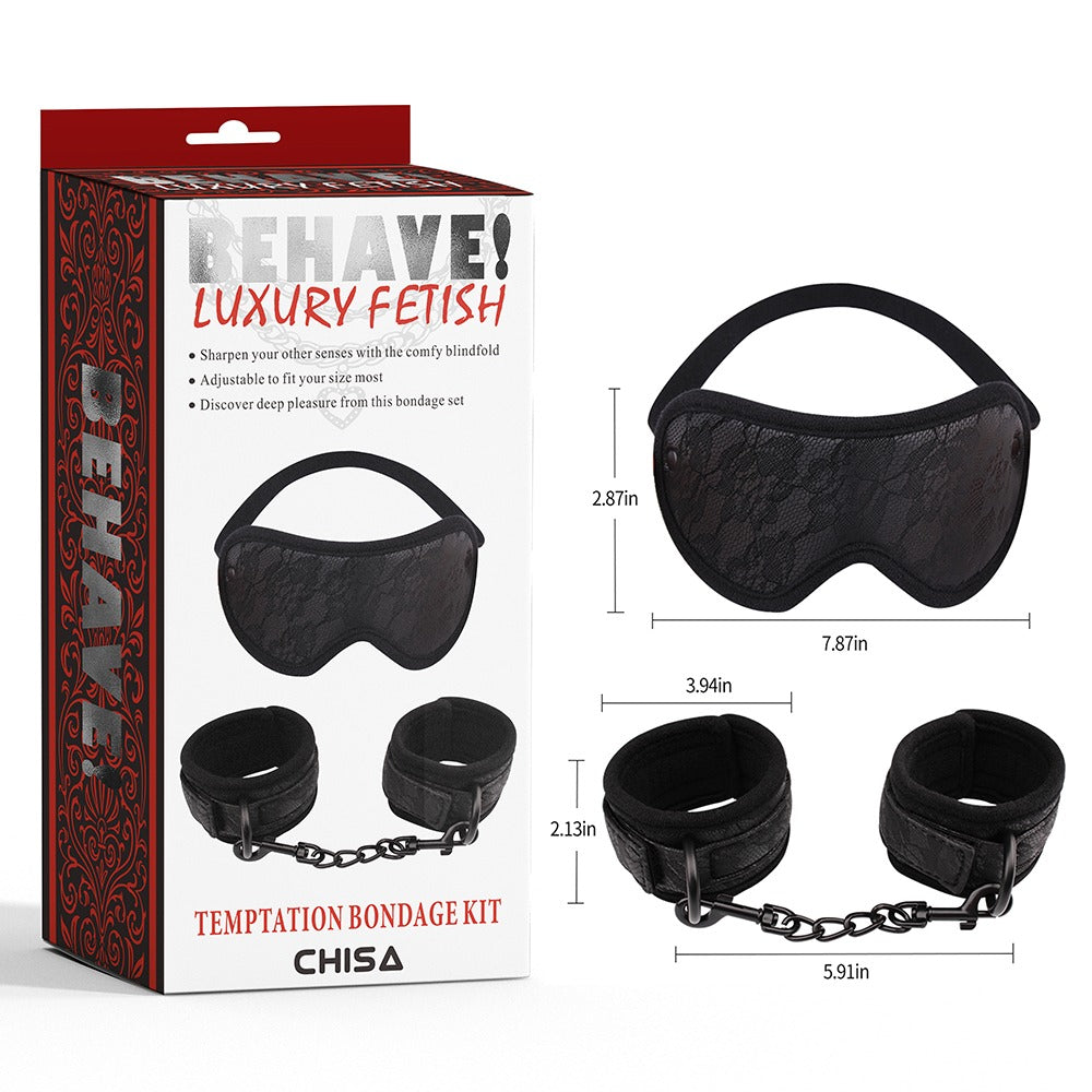 Add a playful twist to your intimate moments with the Behave! Luxury Fetish Temptations Bondage Kit. A perfect pack, pair of cuffs to have your partner controlled and a blindfold to increase sensations. Both pieces are adjustable and very comfortable.