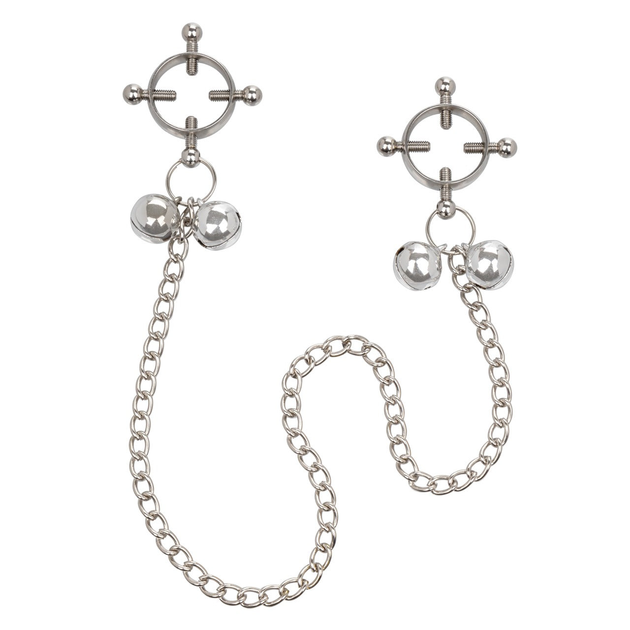 CalExotics Nipple Grips 4-Point Nipple Press with Bells - Silver