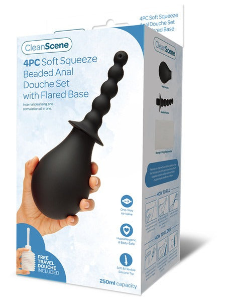 CleanScene 4pc Soft Squeeze Beaded Anal Douche Set with Flared Base - Black