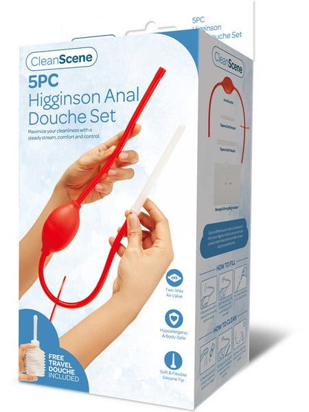 CleanScene 5pc Higginson Anal Douche Set - Red & Clear