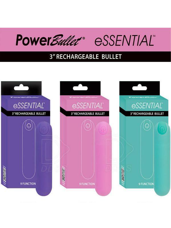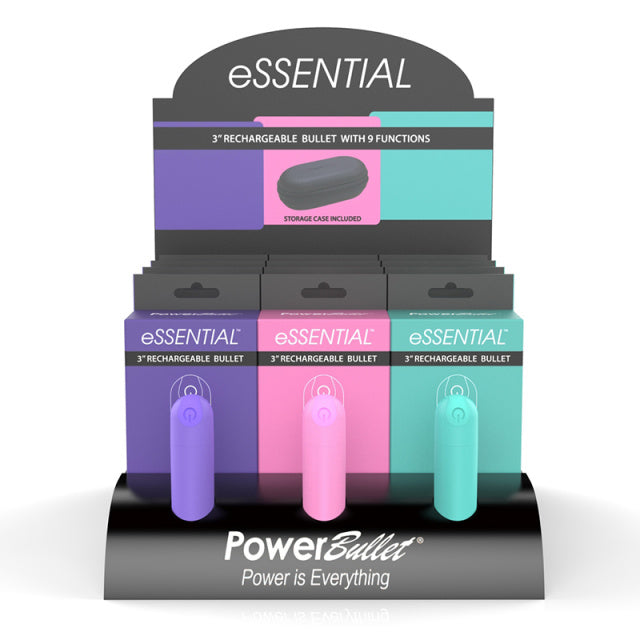 Each package includes a convenient matte storage case and USB charging cord. With 9 different functions, and a long-lasting battery the Essential bullet is a necessity!