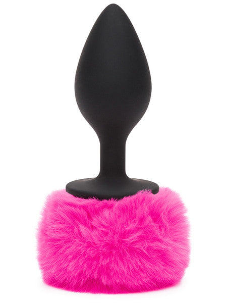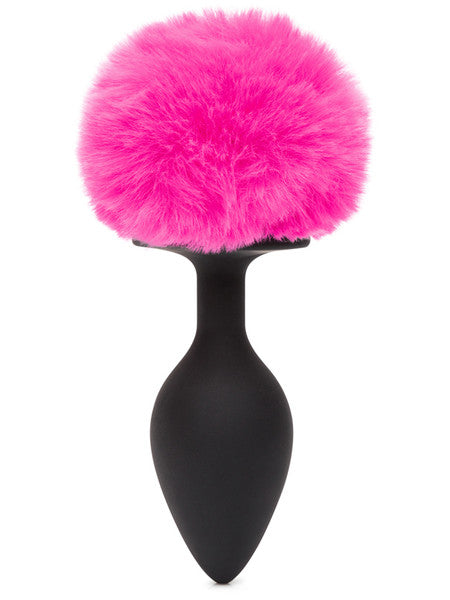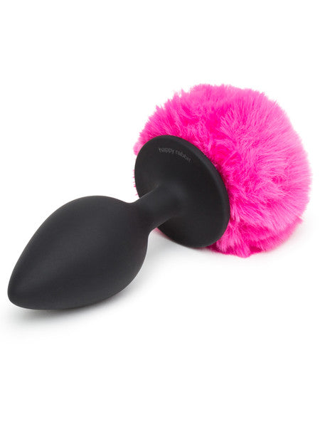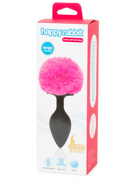 Happy Rabbit Bunny Tail Butt Plug - Large - Black & Hot Pink