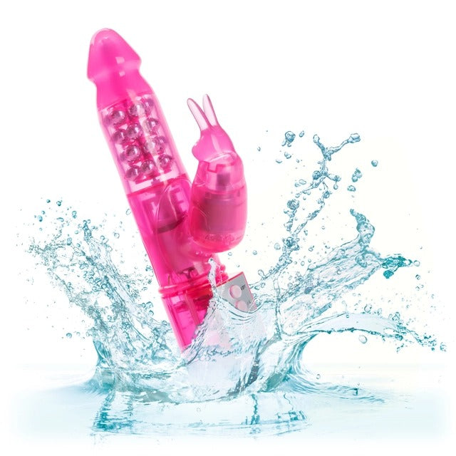 The sex toy is made from super soft TPE and has an ABS controller and silver plated synchronised rotating beads. The penis shaped vibe measures a discreet 5” x 1.25”/12.75 cm x 3.25 cm and has a jelly soft tip, flexible gyrating shaft, and a bunny shaped clitoral teaser that can also be used independently.