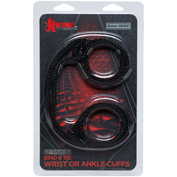Kink by Doc Johnson Hogtied Bind & Tie 6mm Hemp Wrist or Ankle Cuffs - Black