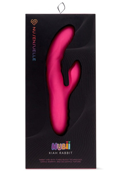 JOINING NU SENSUELLE’S NUBII COLLECTION is Kiah–a versatile rabbit vibe powered by two Nubii motors that allow users in their exploratory stage to purchase a luxury rabbit vibe at a more attractive price.