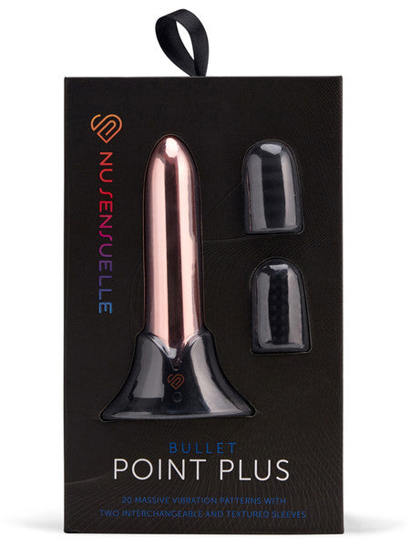 The Nu Generation in Personal Stimulation. The Point PLUS is the Ultimate Super Bullet! The Point PLUS delivers 30% MORE power that the original Sensuelle Point and features dual controls to navigate the INTENSE 20 Function bullet. Includes two silicone sleeves to further enhance your experience!
