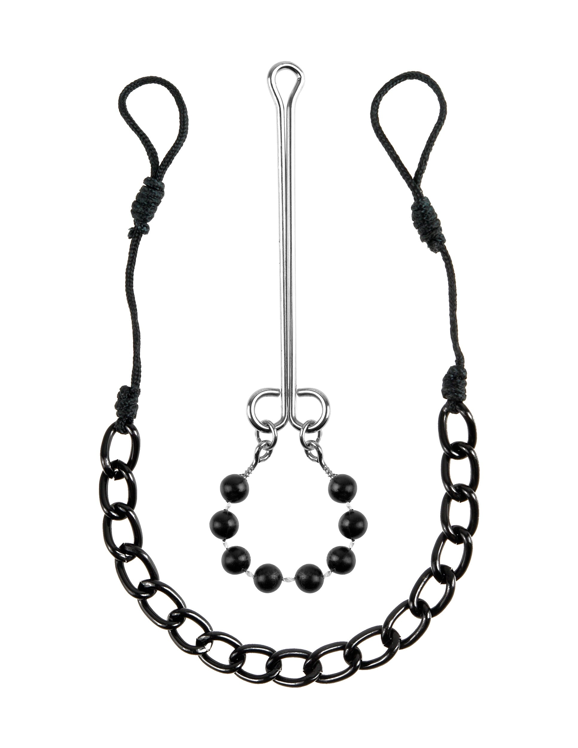 Enjoy explosive stimulation with the sensual clit jewelry. Spread the metal clamp to place your clit through the teardrop to offer easy access to your most precious pleasure spot, while the dangling beads tickle and tease your lips to climax!