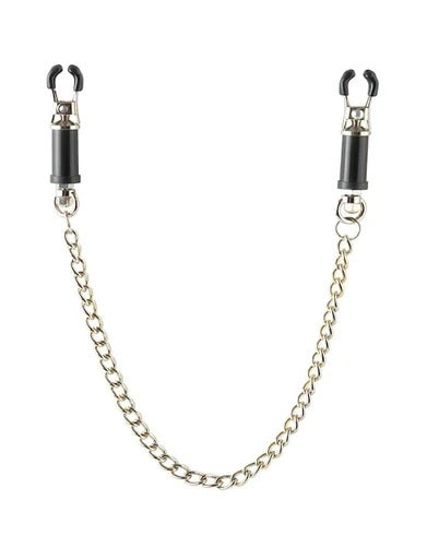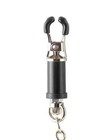 These comfortable nipple clamps feature precision twist-shafts that gently adjust the amount of squeeze applied to your perky nipples. With each turn of the decorative barrel cylinder, the rubber-lined clamps gently apply pressure to your perk nipples, increasing sensations and forcing your nipples to perk with pleasure. The attached O-rings let you add your favorite weights or chains to each clamp, making these clamps the ultimate fetish must-have for nipple teasing and pleasing.