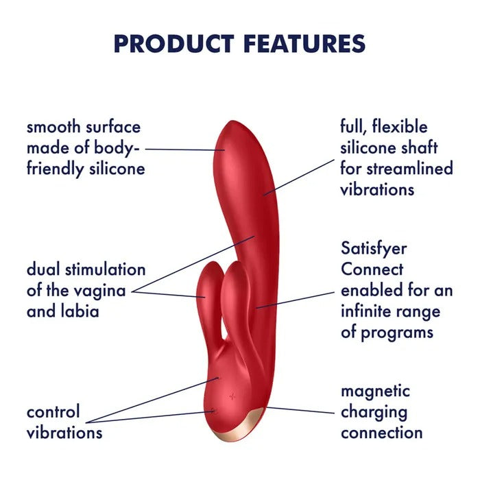 Satisfyer Rechargeable Double Flex Rabbit Vibrator with App Control - Red