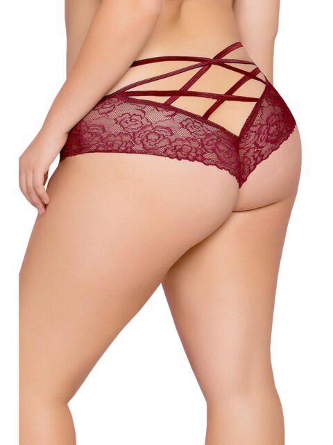 Seven 'Til Midnight 10785X Bianca Rose Galloon Lace Panty - 3XL/4XL - Wine