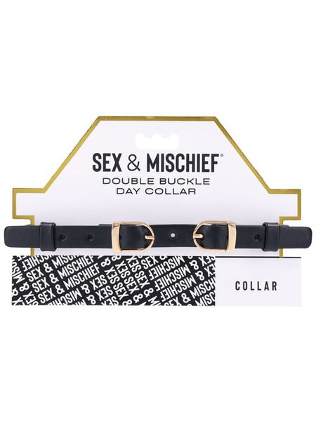 Sportsheets Sex and Mischief Double Buckle Day Collar - Black and Gold