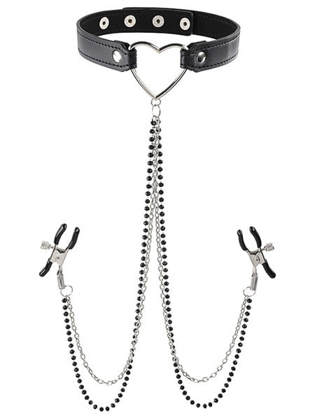Sportsheets Sex & Mischief Amor Collar with Nipple Clamps - Black