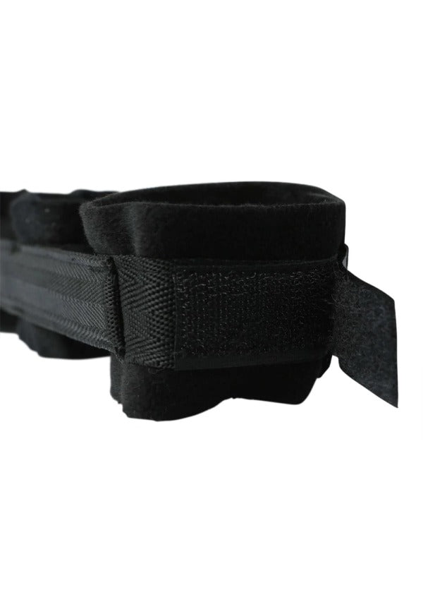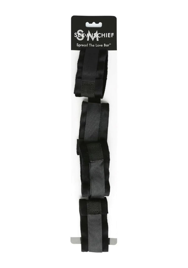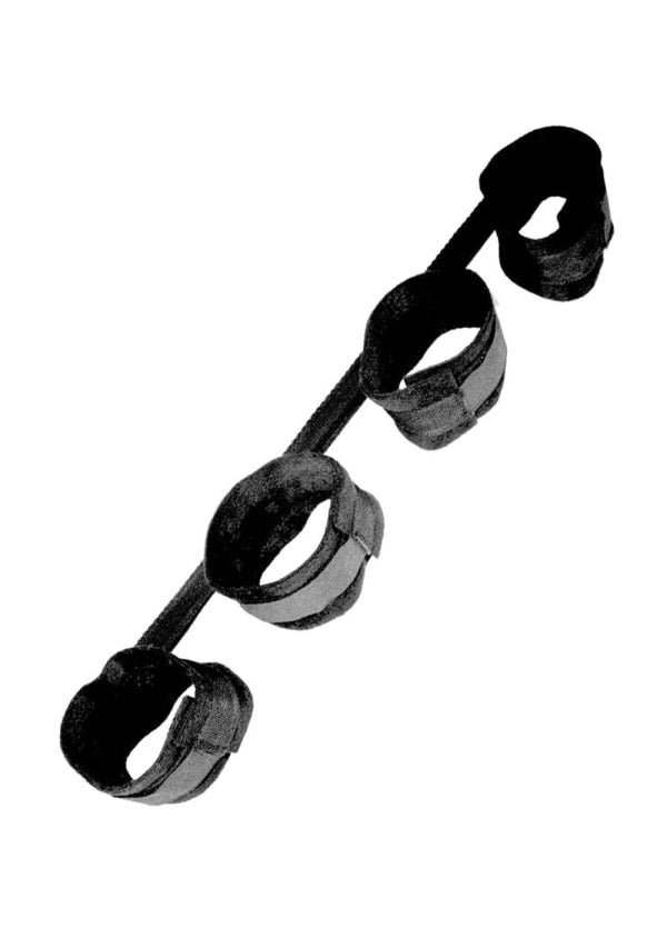 Connect in all new ways with this position-enhancing bondage bar. Explore new horizons of intimate indulgence with a bedroom accessory that allows you to dabble comfortably in BDSM while also achieving never-before-seen positions. Fasten their wrists and ankles into the easy-to-use loop cuffs and play with their vulnerable body, or even just enjoy the new sounds you elicit as you reach the sweet spots that don't come easily during run-of-the-mill penetration. The nylon covered spreader bar makes it more comfortable to maintain the new postures you discover with your partner.
